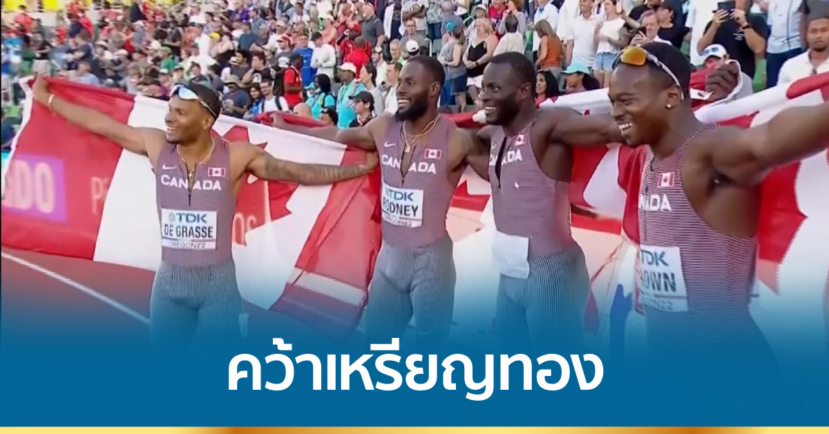 สหรัฐ 24 ก.ค. – ทีมชาติแคนาดา คว้าเหรียญทอง วิ่ง 4×100 เมตรชาย กรีฑาชิงแชมป์โลก 2022 เฉือนชนะทีมชาติสหรัฐ 0.07 วินาที
