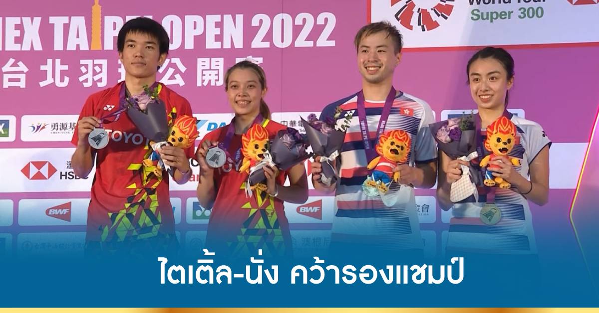ไต้หวัน 24 ก.ค.-“ไตเติ้ล-นั่ง” คู่มืออันดับ 158 ของโลก คว้ารองแชมป์แบดมินตันคู่ผสม ไทเป โอเพ่น 2022 แพ้คู่มืออันดับ 71 ของโลกจากฮ่องกง 0-2 เกม