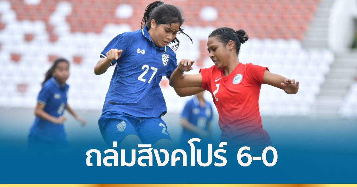 ช่วงเวลาที่เหลือไม่มีประตูเพิ่มเติม จบเกม ฟุตบอลหญิงทีมชาติไทย รุ่นอายุไม่เกิน 18 ปี เอาชนะ สิงคโปร์ ไป 6-0 เก็บ 6 คะแนนเต็ม จาก 2 เกมแรก ส่วนสิงคโปร์ผ่าน 3 นัดไม่มีแต้ม