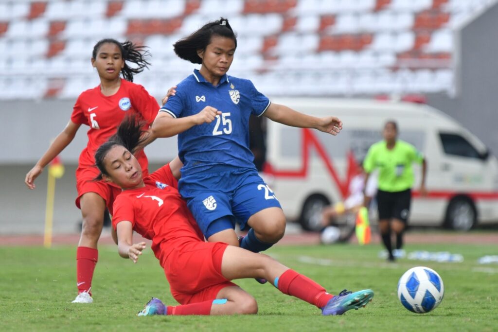 ที่สนามเกโรล่า จาก้า บาริ่ง ฟุตบอลหญิงทีมชาติไทยรุ่นอายุไม่เกิน 18 ปี ลงสนามเกมที่สองของศึกชิงแชมป์อาเซียน พบกับสิงคโปร์