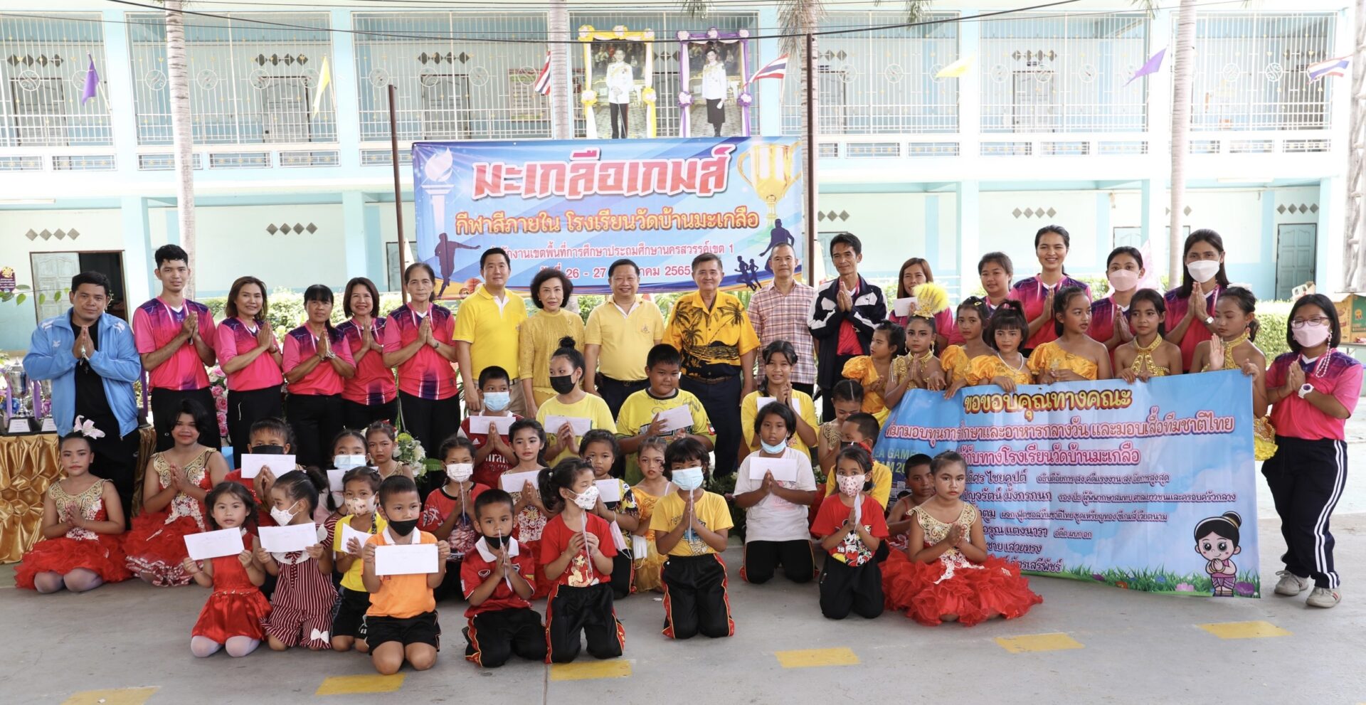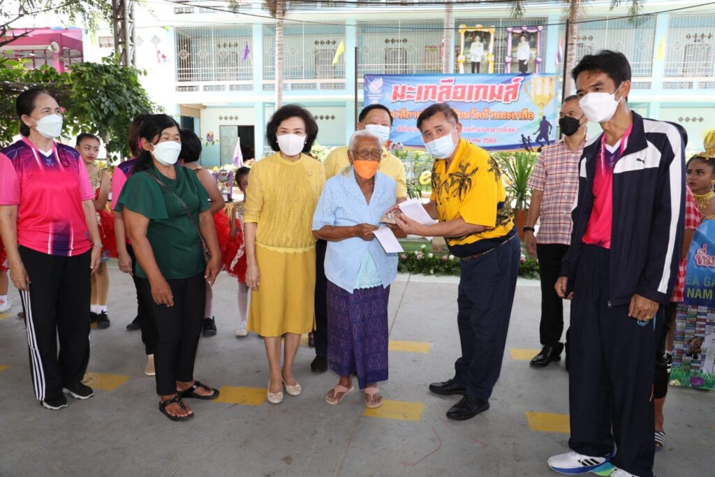 นครสวรรค์ 26 ก.ค.65-“บิ๊กสุ” สุทิน บัวตูม ผจก. ฟุตซอลทีมชาติไทย ชุดเหรียญทอง ซีเกมส์ ที่เวียดนามและที่ปรึกษาสมาคมผู้สื่อข่าวกีฬาออนไลน์ พร้อมด้วย ดร. อดิศร ไชยคุปต์ อธิบดีอัยการ สำนักงานคดีแรงงาน สำนักงานอัยการสูงสุด ดร. ปัญจรัตน์ มังกรกนก รองประธานผู้พิพากษาสมทบ ศาลเยาวชนและครอบครัวกลาง ดร. นลินี ไพบูลย์ ปธ. บริษัทกีฟฟารีน สกายไลน์ ยูนิตี้ จำกัด พล.ต.ต อรุณ แตงนารา พ.ต.ท.ฉัตรพงศ์ เสรีพัชร์ ร่วมมอบทุนการศึกษาแก่เด็กนักเรียนยากไร้ มอบทุนอาหารกลางวัน มอบเงินให้คนชราผู้ยากไร้ และมอบเสื้อกีฬาจำนวน 300 ตัว รวมทั้งอุปการกีฬาแก่ ร.ร. วัดบ้านมะเกลือ อ. เมือง จ. นครสวรรค์ โดยมี ผอ.ร.ร. คณะครู นักเรียน ให้การต้อนรับ