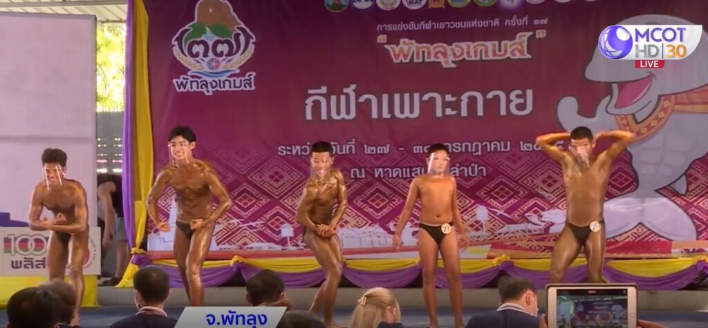 พัทลุง 30 ก.ค. – การแข่งขันกีฬาเยาวชนแห่งชาติ ครั้งที่ 37 “จีโน่” ทูลธรรม สัมฤทธิ์ นักเบ่งกล้ามหนุ่มจากนครราชสีมา โชว์มัดกล้ามสวยงามประทับใจกรรมการ คว้าเหรียญทองแรกไปครอง
