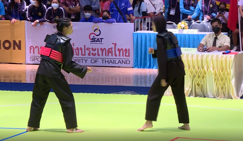“น้องฝน” สุพัตรา สันเทียะ นักกีฬาปันจักสีลัต จากจังหวัดศรีสะเกษ ที่ลงแข่งขันประเภทต่อสู้ กล่าวว่า ตัวเองสนใจกีฬาปันจักสีลัต เพราะมีแรงบันดาลใจจากรุ่นพี่ที่ประสบความสำเร็จเป็นตัวอย่างที่ดี แม้จะเป็นคนภาคอีสาน แต่การเรียนรู้ ฝึกฝน ก็ไม่ใช่เรื่องที่ยากเกินไป และการเล่นกีฬาชนิดนี้ก็สามารถต่อยอดไปเรียนในระดับอุดมศึกษาได้
