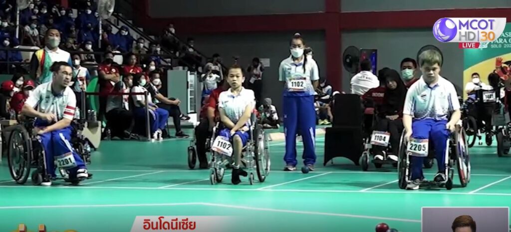 บอคเซีย ที่กอร์ ฟกอร์ ยูเอ็นเอส สปอร์ตส์ ฮอลล์ ประเภทคู่ผสม คลาส บีซี 4 ทีมไทย พบ อินโดนีเซีย โดยทีมไทยประกอบด้วย พรโชค ลาภเย็น กับ ชาลิสา เขียวจันทรา โชว์ความแม่นยำ โยนเอาชนะเจ้าภาพ 6-1