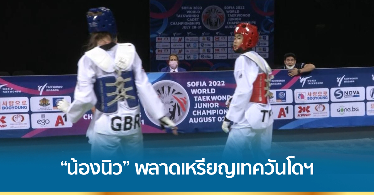 บัลแกเรีย 8 ส.ค. – “น้องนิว” ศศิประภัสร์ สุขอนันต์โชติ รุ่น 59 กก.หญิง ประสบการณ์น้อย พลาดเหรียญเทควันโดชิงแชมป์โลกไปอย่างน่าเสีย หลังแพ้จอมเตะจากอังกฤษ