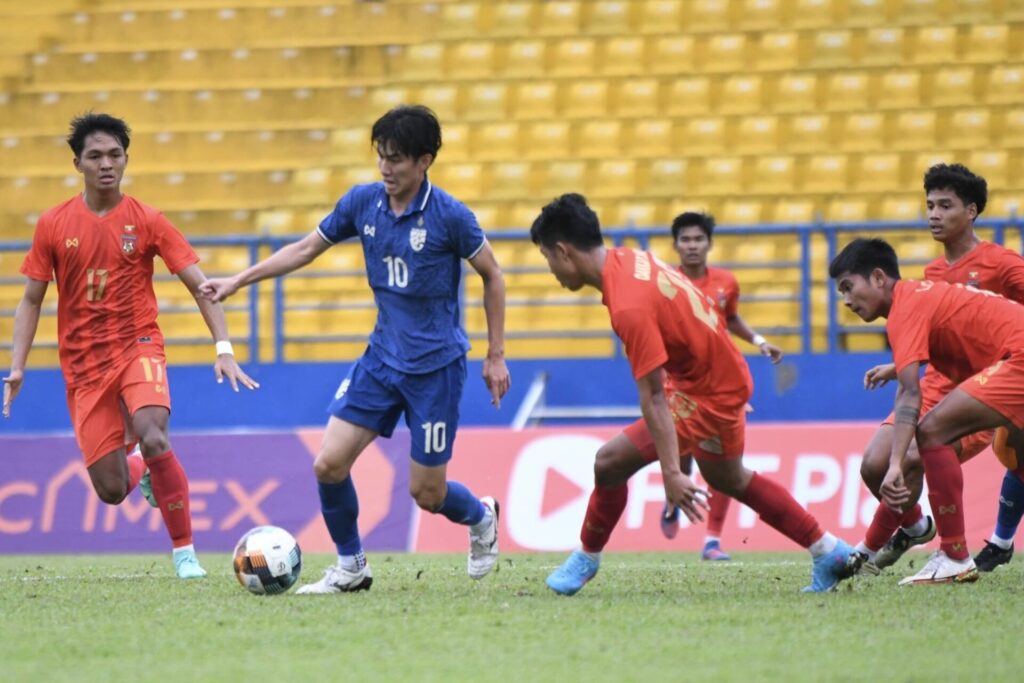 เริ่มเกมมา 9 นาที ไฮน์ ซอว์ เนียง ได้ยิงที่เสาสองเข้าไปให้เมียนมานำก่อน 1-0 แต่นาทีที่ 13 ไทยมาได้ฟรีคิก และเป็นธนกฤต ละออไขย์ ที่ปั่นด้วยซ้ายยัดเข้าไปให้สกอร์กลับมาเท่ากันที่ 1-1