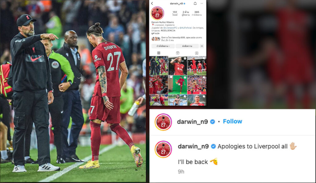 ดาร์วิน นูนเญซ กองหน้าลิเวอร์พูล ออกมาขอโทษผ่านโซเชียล ด้วยการโพสต์เป็นภาษาสเปนว่า “รู้ตัวดีว่าแสดงกิริยาที่น่าเกลียด ตนมาที่นี่เพื่อเรียนรู้จากความผิดพลาด และสัญญาว่าจะไม่เกิดขึ้นอีก จากนั้นเจ้าตัวโพสต์อีกรอบเป็นข้อความเป็นภาษาอังกฤษว่า “ขอโทษแฟนบอลลิเวอร์พูลทุกคน ตนจะกลับมาอีกครั้ง”