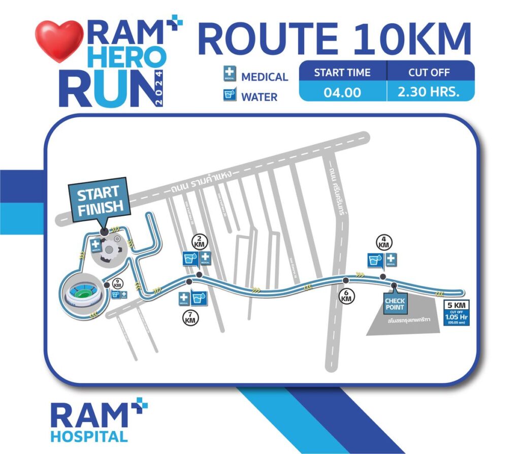 ด้าน นางสาวทัศน์วรรณ ศิริวงศ์ กรรมการบริหาร โรงพยาบาลรามคำแหง กล่าวเสริมว่า “การแข่งขันวิ่ง “Ram Hero Run 2024” วิ่งปลอดภัย เพื่อทุกหัวใจแข็งแรง แบ่งการแข่งขันออกเป็น 4 ประเภท ได้แก่ แฟมิลี่ รัน ระยะทาง 3 กิโลเมตร, ฟันรัน ระยะทาง 5 กิโลเมตร, มินิ มาราธอน ระยะทาง 10 กิโลเมตร และฮาล์ฟ มาราธอน ระยะทาง 21 กิโลเมตร ซึ่งเส้นทางการวิ่งได้รับการวัดระยะและรับรองจากสมาคมกีฬากรีฑาแห่งประเทศไทย นอกจากนี้ยังใช้ระบบ Chip Time มาตรฐานระดับสากลในการตัดสิน เพื่อความเป็นธรรมแก่นักวิ่งทุกคน และ