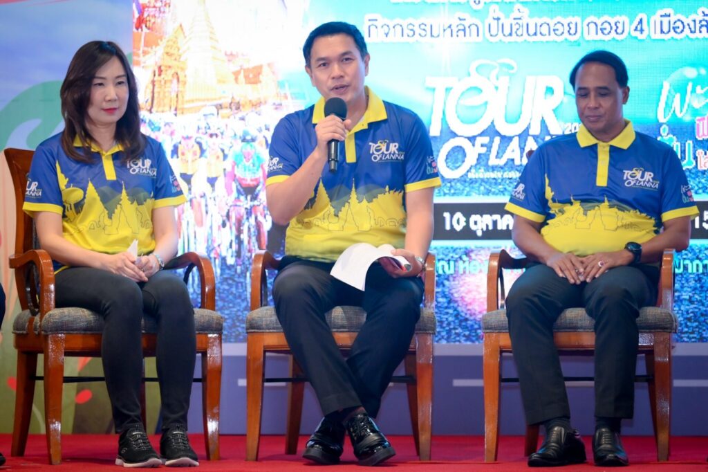 นายบำรุง สังข์ขาว รองผู้ว่าราชการจังหวัดพะเยา พร้อมด้วย นายคุณากร คชหิรัญ รองผู้ว่าราชการจังหวัดแพร่, นายวิภุช วิเศษสิงห์ ท่องเที่ยวและกีฬาจังหวัดพะเยา ,นางสาวนพรัตน์ ศตะรัตน์ ท่องเที่ยวและกีฬาจังหวัดน่าน และ นางสาวมุกภารัศมิ์ พรมอะริยะ ผู้แทนท่องเที่ยวและกีฬาจังหวัดเชียงราย และ ว่าที่ร้อยตรีรังสรรค์ จอมนวล นักวิเคราะห์และนโยบายแผนชำนาญการผู้แทนท่องเที่ยวและกีฬาจังหวัดแพร่ ร่วมแถลงข่าวกิจกรรมปั่นขึ้นดอย กอย 4 เมืองล้านนาตะวันออก ณ ห้องแคทลียา 2 ชั้น 1 โรงแรมรามาการ์เด้นส์ ถนนวิภาวดีรังสิต เขตหลักสี่ กรุงเทพมหานคร เมื่อวันที่ 10 ตุลาคม 2567