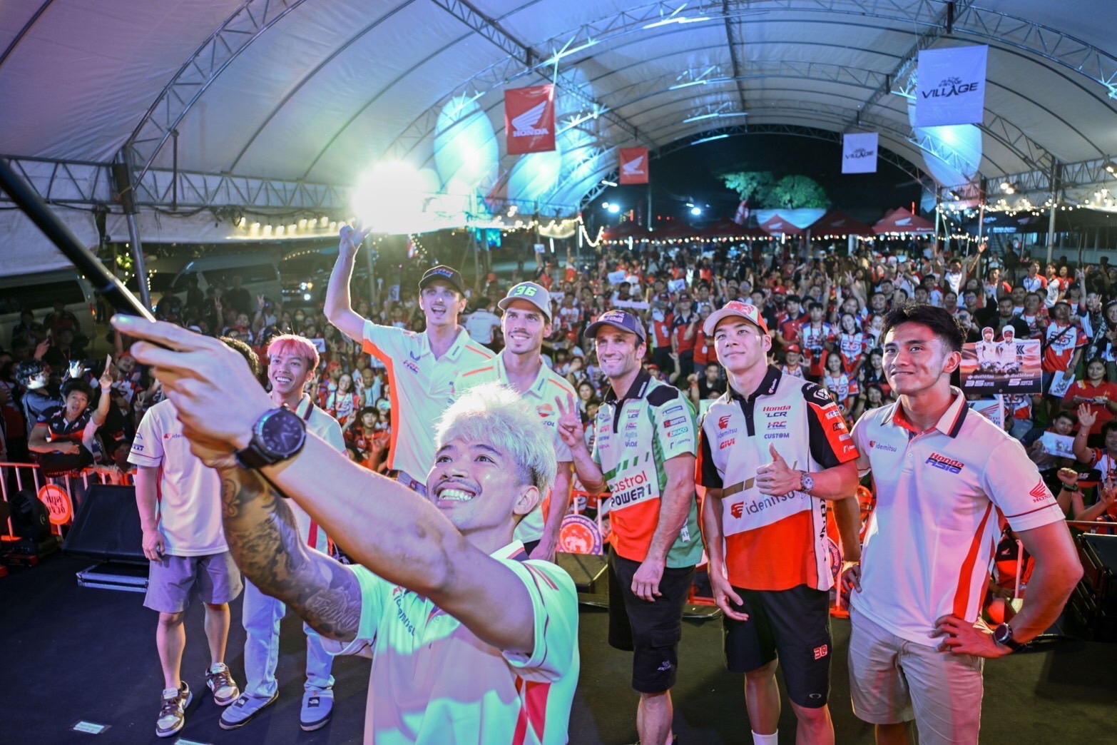 นำโดย 4 นักแข่งโมโตจีพี “ลูก้า มารินี”, “โจอัน เมียร์” สังกัด เรปโซล ฮอนด้า ทีม, “โยฮันน์ ซาร์โก้”, “ทาคาอากิ นาคากามิ” สังกัด แอลซีอาร์ ฮอนด้า รวมถึงขวัญใจนักบิดไทยอย่าง “ก้อง” สมเกียรติ จันทรา สังกัด อิเดมิตสึ ฮอนด้า ทีม เอเชีย และทีมเมท “มาริโอ้ เซอโย อาจิ” ในรุ่นโมโตทู และ “ก๊องส์” ธัชกร บัวศรี สังกัด ฮอนด้า ทีม เอเชีย และทีมเมท “ไทโย ฟุรุซาโตะ” ในรุ่นโมโตทรี