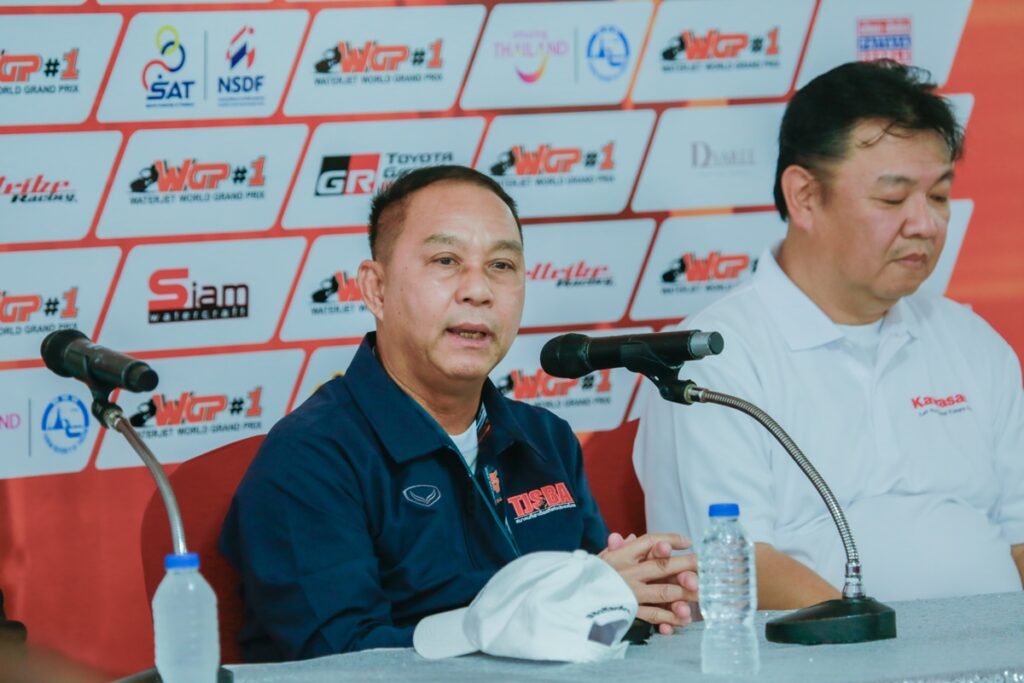 นายไพรวัลย์ อารมณ์ชื่น รองประธานสภาเมืองเมืองพัทยา พร้อมด้วย พล.ต.อ.เดชณรงค์ สุทธิชาญบัญชา นายกสมาคมกีฬาเจ็ตสกีแห่งประเทศไทยฯ, นายปริเขต สืบสหการ ผู้อำนวยการทัวร์นาเม้นท์ WGP#1, มร.ฮิโรโนริ คาโต้ ผู้จัดการอาวุโสฝ่ายพัฒนา คาวาซากิ ประเทศญี่ปุ่น และ มร.แวน ดุง ทรัง กรรมการบริหาร บริษัท สยามวอเตอร์คร้าฟท์ แอนด์ พาวเวอร์สปอร์ต จำกัด ร่วมแถลงข่าว เจ็ตสกีชิงแชมป์โลก รอบชิงชนะเลิศ รายการ WGP#1 Waterjet World Cup 2024 ณ หาดจอมเทียน เมืองพัทยา