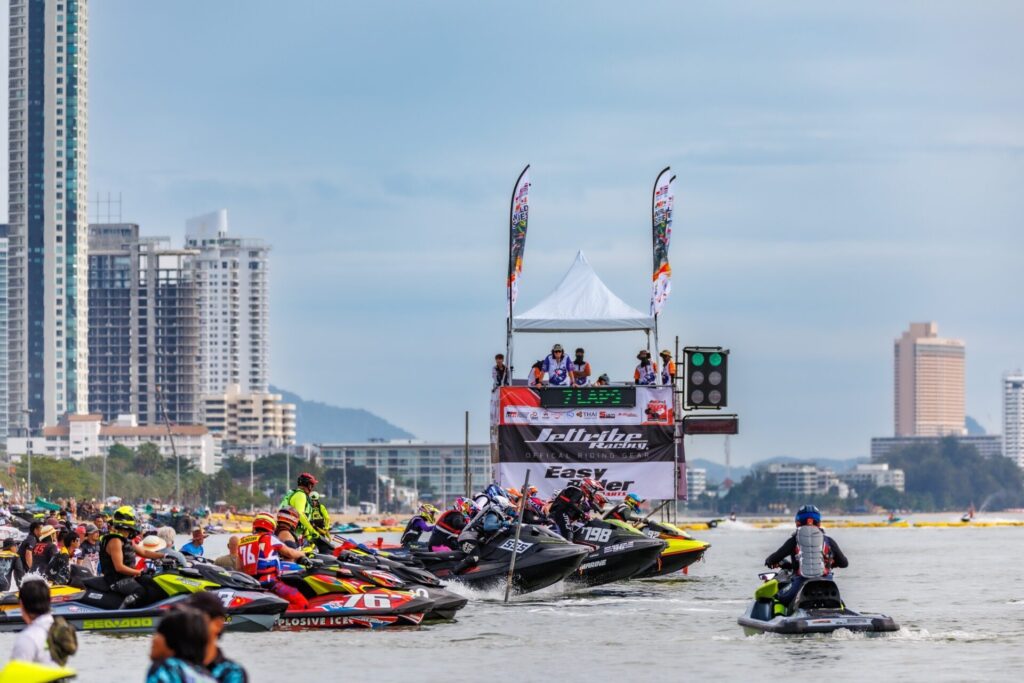 ศึกเจ็ตสกีชิงแชมป์โลก 2024 WGP#1 Waterjet World Cup ที่หาดจอมเทียน เมืองพัทยา เข้าสู่การแข่งขันวันที่ 3 เมื่อวันที่ 13 ธันวาคม มีรุ่นใหญ่ระดับมืออาชีพลงแข่งขันจบไปแล้ว 1 รุ่นในรุ่นที่ได้รับความนิยมไปทั่วโลกอย่างเจ็ตสกีทางไกล เอนดูรานซ์ (PRO-AM Endurance OPEN) ที่มีเรือลงแข่งขันถึง 34 ลำ ทำการแข่งขัน 2 โมโต