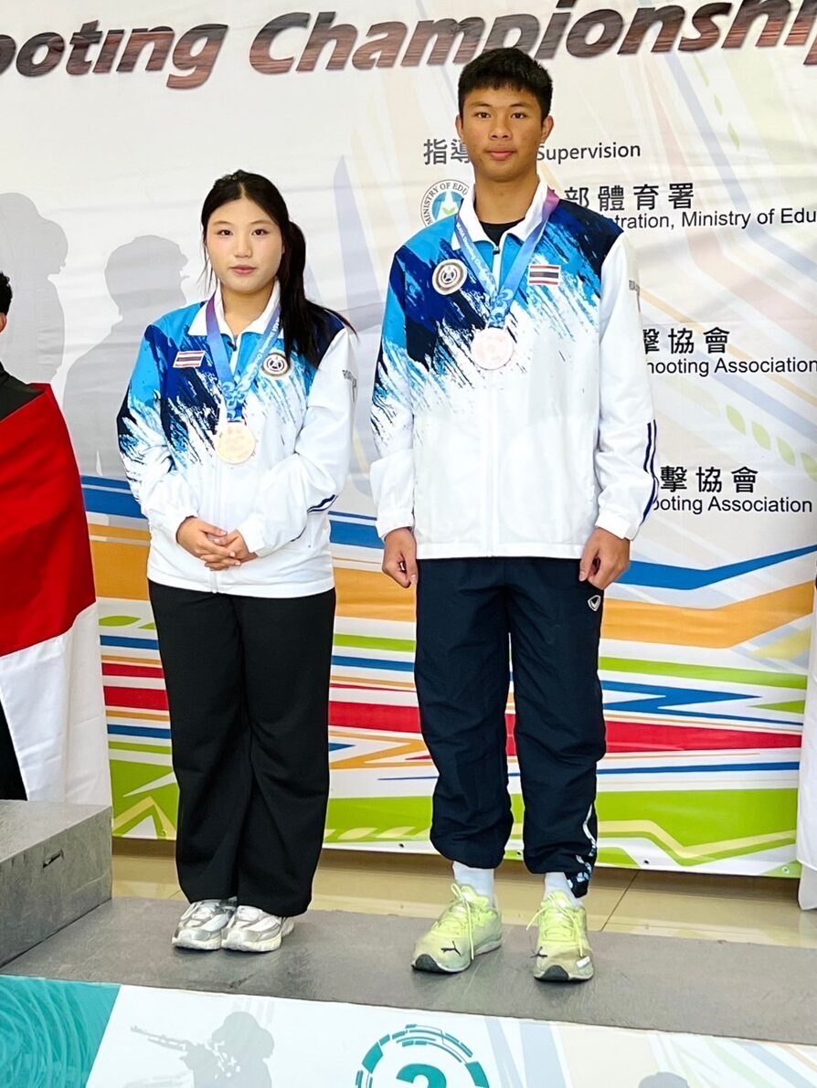 ที่สามารถสร้างผลงานยอดเยี่ยม คว้า 2 เหรียญทองแดง ให้กับประเทศไทย ในการแข่งขัน 46th SEASA Shooting Championship 2025 ณ เมืองเถาหยวน ของไต้หวัน ในการแข่งขันยิงปืนระดับนานาชาติครั้งนี้ ทั้งสองคนสามารถคว้า อันดับที่ 3 ในประเภท ปืนยาวอัดลมคู่ผสม รุ่นเยาวชน ซึ่งเป็นอีกหนึ่งผลงานที่สร้างความภาคภูมิใจให้กับวงการยิงปืนไทย