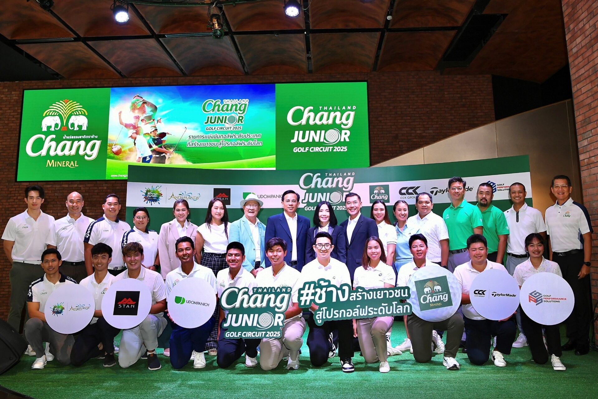 เปิดโครงการ “Chang Thailand Junior Golf Circuit 2025” อย่างยิ่งใหญ่ที่ Chang Canvas @ One Bangkok โดย คุณเจษฎากร โคชส์ ผู้อำนวยการสำนักการตลาด บริษัท ช้าง อินเตอร์เนชั่นแนล จำกัด โดย น้ำแร่ธรรมชาติตราช้าง และ คุณแพทริค หอรัตนชัย ผู้อำนวยการ ผู้บริหารสายงานกิจการองค์กร ประเทศไทย บริษัท ไทยเบฟเวอเรจ จำกัด (มหาชน) พร้อมมี โปรฟีเวอร์-นิติธร ทิพย์พงษ์ และ โปรนิ้ง-เนมิตรา จันต๊ะนาเขตร์ โปรกอล์ฟระดับประเทศที่เคยผ่านการเข้าร่วมโครงการ Chang Thailand Junior Golf Clinic และ เจมส์ มาร์ ซุปตาร์ผู้มุ่งมั่นในกีฬากอล์ฟจนได้เป็นนักกีฬากอล์ฟเยาวชนทีมโรงเรียนที่ฮ่องกง ร่วมด้วยยูทูปเบอร์นักกอล์ฟชื่อดัง อาร์ต – มารุต ชื่นชมบูรณ์ มาร่วมงาน