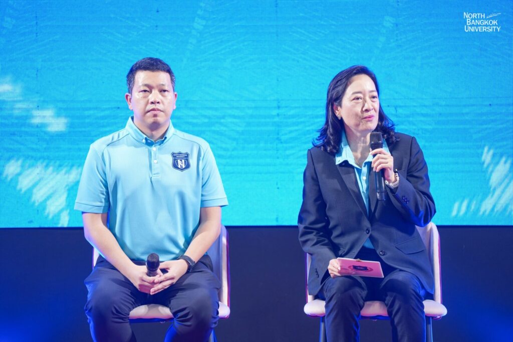 ผู้ช่วยศาสตราจารย์ ดร.ปัทมา รูปสุวรรณกุล รองอธิการบดีอาวุโส มหาวิทยาลัยนอร์ทกรุงเทพ ในฐานะประธานสโมสรฟุตบอลมหาวิทยาลัยนอร์ทกรุงเทพ ประธานในพิธี แถลงข่าวเปิดตัว สโมสรฟุตซอล “เอสแบค – นอร์ทกรุงเทพ” (SBAC – NORTH BANGKOK Futsal Club) พร้อมสู้ศึก MEA ฟุตซอลไทยลีก ฤดูกาล 2025 ซึ่งเป็นลีกสูงสุดของประเทศไทย