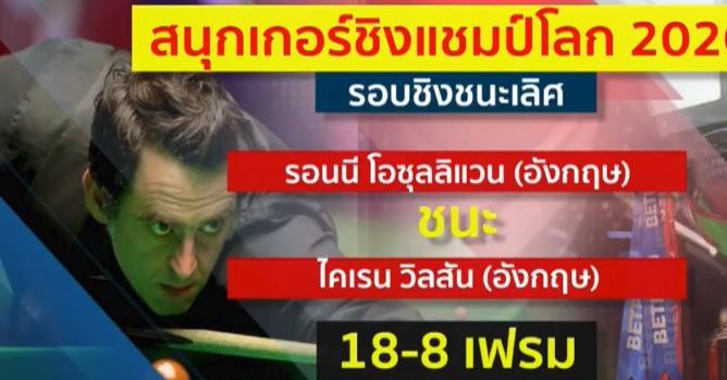 ศึกสนุกเกอร์ชิงแชมป์โลก 2020 ที่ครูซิเบิล เธียเตอร์ เมืองเชฟฟิลด์ ประเทศอังกฤษ รอบชิงชนะเลิศ แข่งในระบบ 18 ใน 35 เฟรม ผลปรากฏว่า รอนนี โอซุลลิแวน อดีตแชมป์โลก 5 สมัยชาวอังกฤษ ออกคิวได้อย่างเฉียบคมเอาชนะ ไคเรน วิลสัน เพื่อนร่วมชาติ 18-8 เฟรม คว้าแชมป์โลกสมัยที่ 6 และยังทำให้ โอซุลลิแวน ทำสถิติคว้าแชมป์รายการสะสมคะแนนโลกมากที่สุด 37 รายการ แซงเจ้าของสถิติเดิมอย่าง สตีเฟน เฮนดรี ที่ทำไว้ 36 รายการ พร้อมขยับขึ้นไปเป็นมือวางอันดับ 2 ของโลก