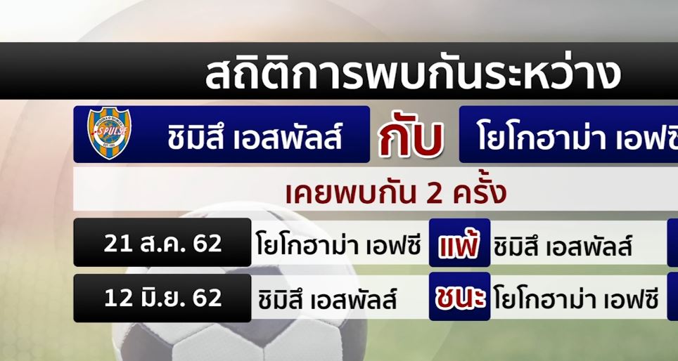 คู่นี้เคยเจอกันมา 2 ครั้งเมื่อปีที่แล้ว ชิมิสึ เอสพัลส์ เอาชนะได้ทั้ง 2 เกม 21 ส.ค.ปีที่แล้ว ชิมิสึ เอสพัลส์ บุกไปชนะโยโกฮามา เอฟซี 2-0 และ 12 มิ.ย.ปีที่แล้ว ชิมิสึ เอสพัลส์ เล่นในบ้าน ชนะโยโกอามา เอฟซี 3-0
