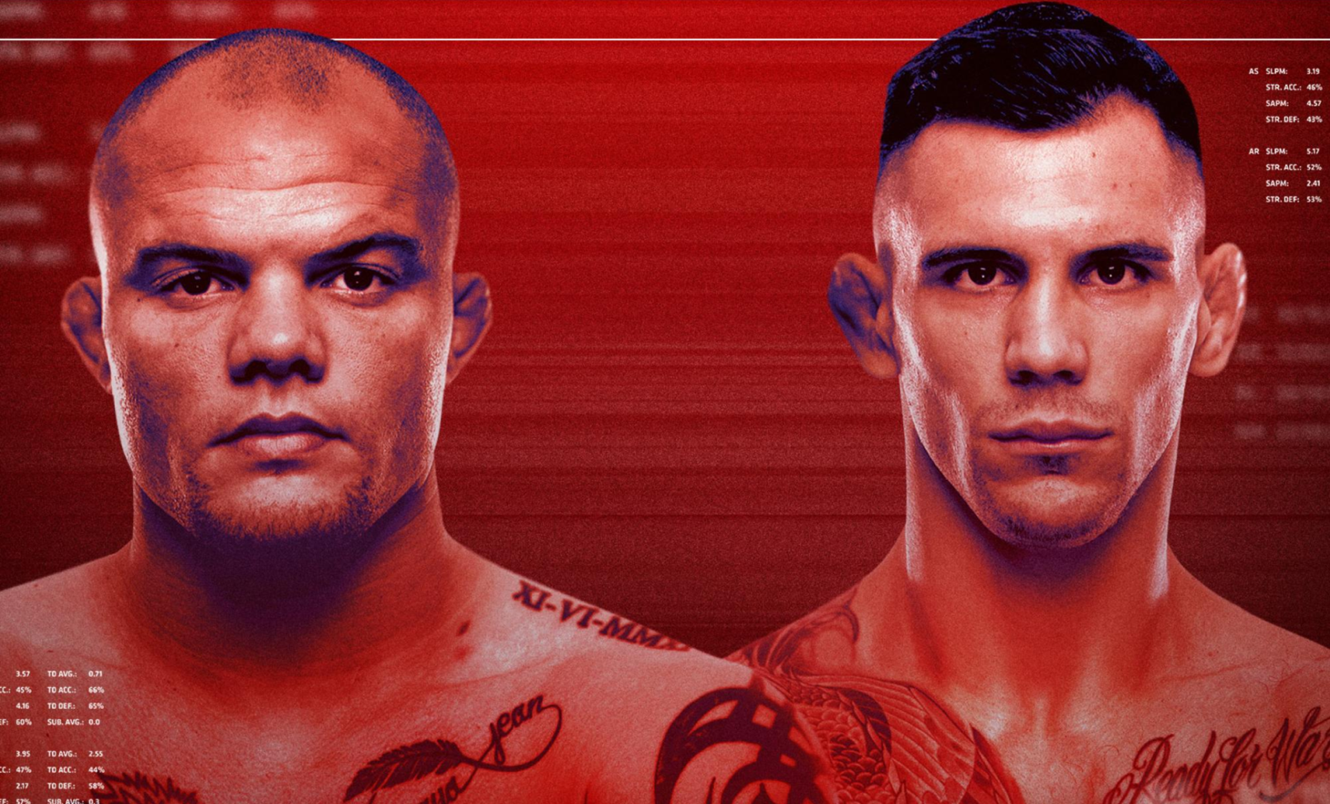 คู่เอกเป็นการโคจรมาพบกันของ แอนโธนี สมิธ นักสู้ประสบการณ์สูงจากโอมาฮา อันดับ 5 ของรุ่นไลท์เฮฟวี่เวต อดีตผู้ท้าชิงแชมป์ของรุ่น ที่ล่าสุดอยู่ในฟอร์มร้อนแรง ชนะ 7 จาก 10 ไฟท์ล่าสุด จะลงดวลในเวทีแปดเหลี่ยมกับ อเล็กซานดาร์ ราคิช นักสู้ชาวออสเตรียที่กำลังมาแรง ชนะใน UFC มาต่อเนื่อง 4 ไฟต์ก่อนจะเพิ่งแพ้ไปในไฟต์ล่าสุด ปัจจุบันอยู่ในอันดับ 8 ของรุ่นไลท์เฮฟวี่เวท และหวังจะกลับสู่เส้นทางของชัยชนะในไฟต์นี้ให้ได้