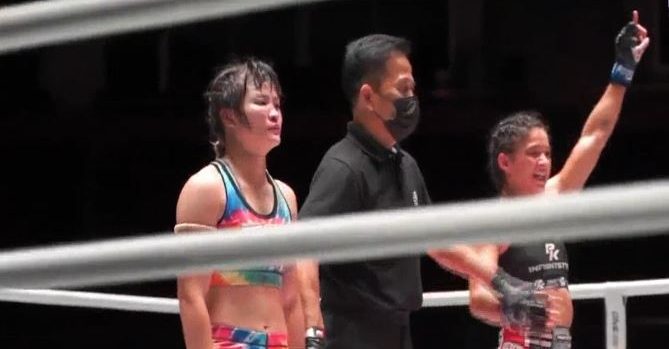 เมืองทองธานี 29 ส.ค.- อัลลิเซีย เฮลเลน รอดริเกส นักชกสาวจากบราซิล ชนะคะแนน แสตมป์ แฟร์เท็กซ์ คว้าแชมป์ ONE มวยไทย รุ่นอะตอมเวตหญิง