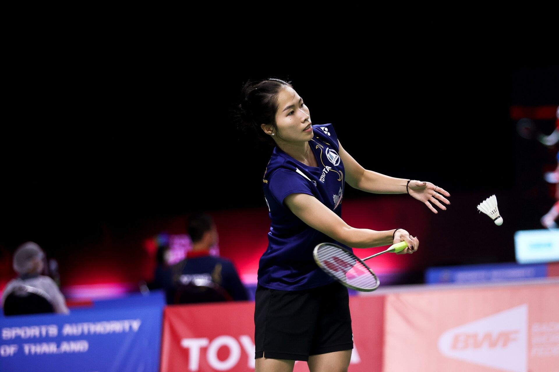 นนทบุรี 19 ม.ค. – การแข่งขันแบดมินตัน รายการที่ 2 โตโยต้า ไทยแลนด์ โอเพ่น ซุปเปอร์ 1000 ที่อิมแพค อารีน่า เมืองทองธานี ประเภทหญิงเดี่ยว รอบแรก “เมย์” รัชนก อินทนนท์ มือวาง 4 ของรายการ มืออันดับ 5 ของโลก ตบเอาชนะ ไซน่า เนวาล มืออันดับ 20 ของโลกจากอินเดีย ไปอย่างขาดลอย 2-0 เกม 21-17 , 21-8 ใช้เวลาแข่งขัน 32 นาที