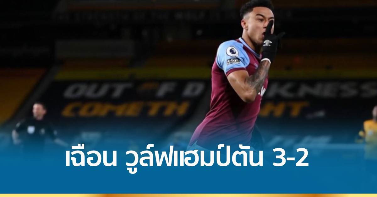 ฟุตบอลพรีเมียร์ลีก อังกฤษ วูล์ฟแฮมป์ตัน พบ เวสต์แฮม ยูไนเต็ด เกมนี้ “ขุนค้อน” ทีมเยือน ออกสตาร์ทได้อย่างยอดเยี่ยม ด้วยทำประตูออกนำก่อนถึง 3-0 โดยได้จาก เจสซี ลินการ์ด นาทีที่ 6, ปาโบล ฟอร์นาลส์ นาทีที่ 14 และจาร์ร็อด โบเวน นาทีที่ 38 ก่อนที่ “หมาป่า” เจ้าถิ่น จะได้ประตูตีไข่แตกเป็น 1-3 ในนาทีที่ 44 จาก เลอันโดร เดนด็องเกอร์ เข้าสู่ครึ่งหลัง “หมาป่า” บุกหนักก่อนจะมาได้ประตูไล่มาเป็น 2-3 จาก ฟาบิโอ ซิลวา ในนาทีที่ 68 แต่สุดท้ายไล่ไม่ทัน จบเกมเวสต์แฮม บุกชนะ 3-2 เก็บเพิ่มเป็น 52 แต้ม จาก 30 นัด แซงขึ้นรั้งอันดับ 4 ของตาราง โดยนำเชลซี ทีมอันดับ5 อยู่ 1 คะแนน ส่วน วูล์ฟแฮมป์ตัน เตะ 30 นัด มี 35 แต้ม อยู่ที่ 14 ของตาราง