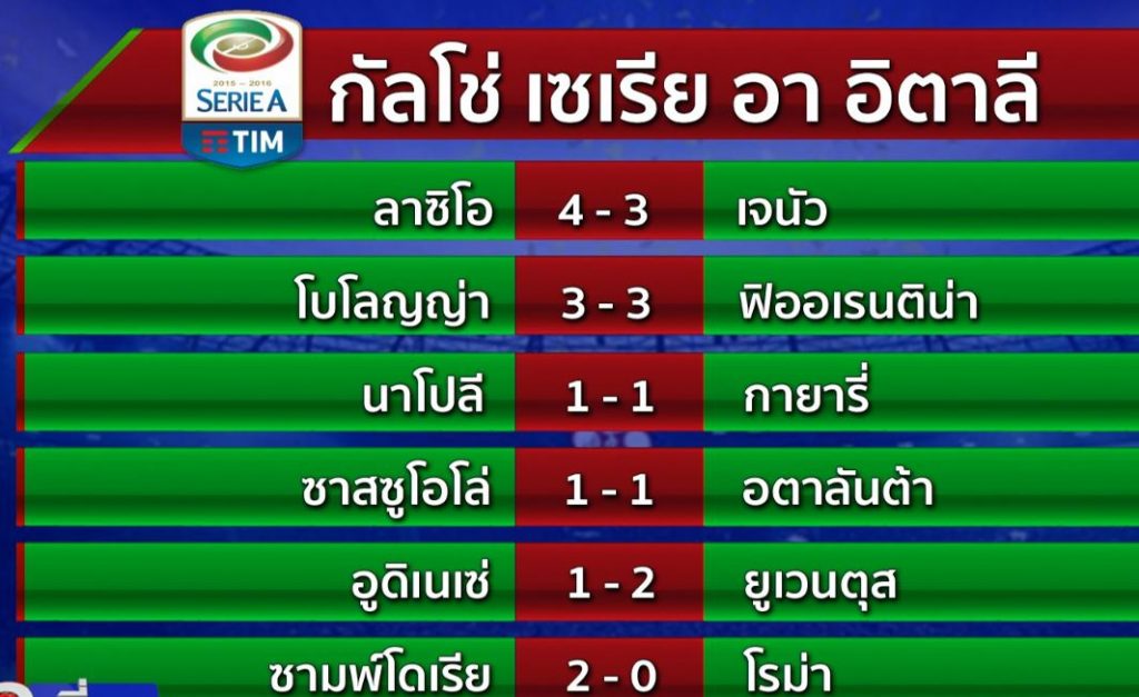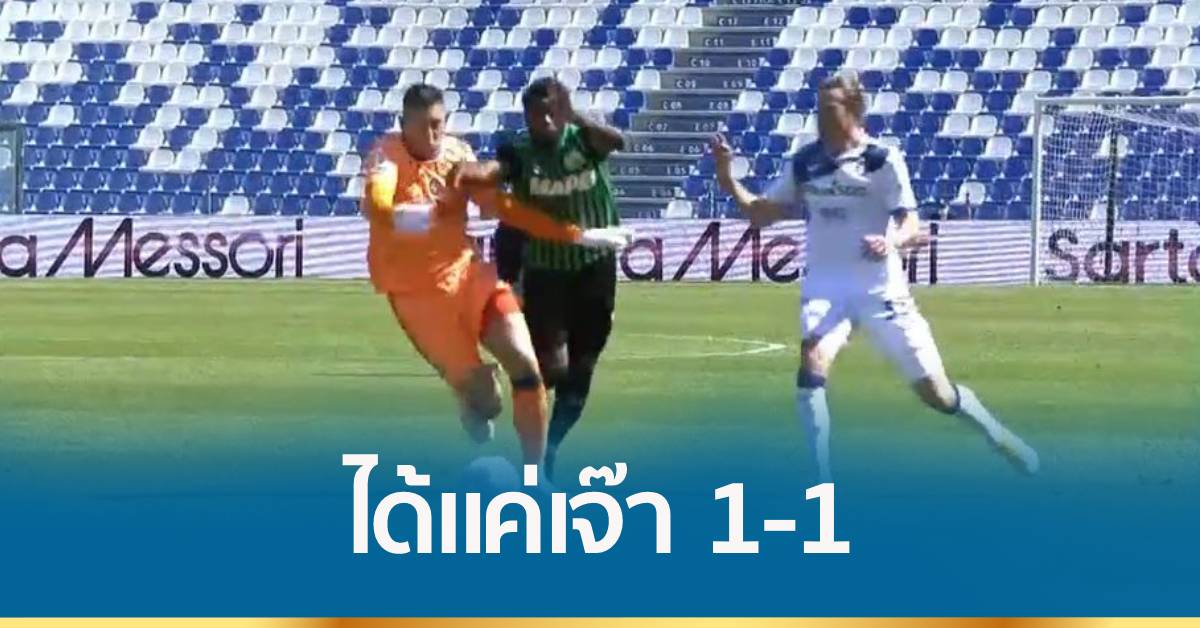 ฟุตบอลกัลโช เซเรีย อา อิตาลี ซาสซูโอโล เปิดมาเปอี สเตเดี้ยม พบอตาลันตา เกมนี้ทีมเยือนเหลือ 10 คน ตั้งแต่นาทีที่ 22 หลัง ปิแอร์ลุยจิ โกลลินี โดนใบแดงไล่ออกจากสนาม แต่ถึงนาทีที่ 32 โรบิน โกเซนส์ ยิงให้อตาลันตาขึ้นนำ 1-0 ครึ่งหลัง เจ้าถิ่นตีเสมอเป็น 1-1 จากจุดโทษของโดเมนิโก เบราร์ดี นาทีที่ 52 กระทั่งนาทีที่ 75 ซาสซูโอโลเหลือ 10 คนเช่นกัน มาร์ลอน โดนใบเหลืองแดงไล่ออกจากสนาม จบเกมเสมอ 1-1 แบ่งไปทีมละ 1 แต้ม ซาสซูโอโล มีเพิ่มเป็น 53 แต้มจาก 32 นัด อยู่ที่ 8 ส่วน อตาลันตา มี 69 แต้มจาก 34 นัด อยู่อันดับ 2 ตามหลัง อินเตอร์ มิลาน จ่าฝูง 13 คะแนน ขณะที่เหลือเกมอีกแค่ 4 นัด ส่งผลให้ “งูใหญ่” คว้าแชมป์สคูเด็ตโต ฤดูกาลนี้ไปครองได้แน่นอนแล้ว