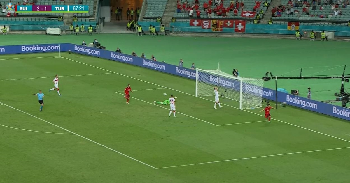 ต่อมานาทีที่ 26 สวิตเซอร์แลนด์ หนีห่างเป็น 2-0 จาก เซอร์ดาน ชากิรี ที่ปั่นด้วยขวา บอลพุ่งผ่านมือผู้รักษาประตูของ ตุรกี ไปอย่างงดงาม