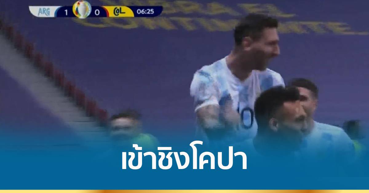 ฟุตบอลโคปา อเมริกา 2021 รอบรองชนะเลิศ คู่ที่ 2 “ทีมฟ้าขาว อาร์เจนตินา นำทีมโดย ลีโอเนล เมสซี พบ โคลอมเบีย เริ่มเกมเพียง 7 นาที ลีโอเนล เมสซี ได้บอลในเขตโทษ ไหลให้ เลาตาโร มาร์ติเนซ ซัดด้วยขวาเข้าไปให้อาร์เจนตินาขึ้นนำก่อน 1-0