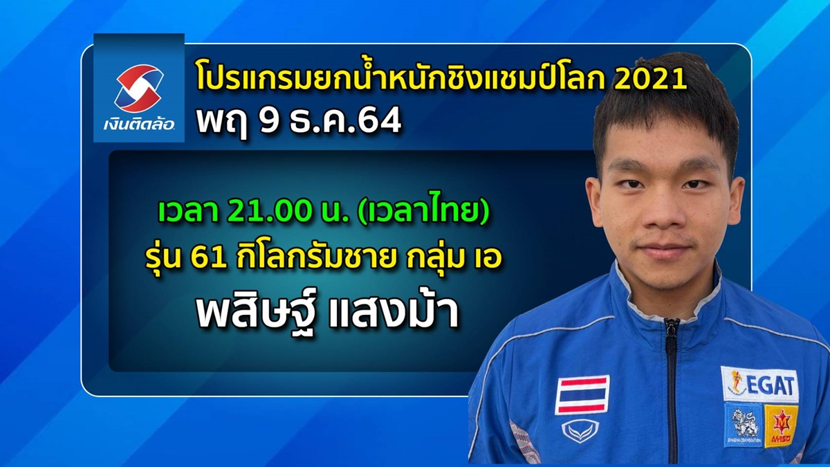 ส่วนโปรแกรมการแข่งขันวันนี้ (9 ธ.ค.64) พสิษฐ์ แสงม้า จะลงแข่งขัน รุ่น 61 กิโลกรัมชาย กลุ่มเอ เวลา 21.00 น. ตามเวลาประเทศไทย