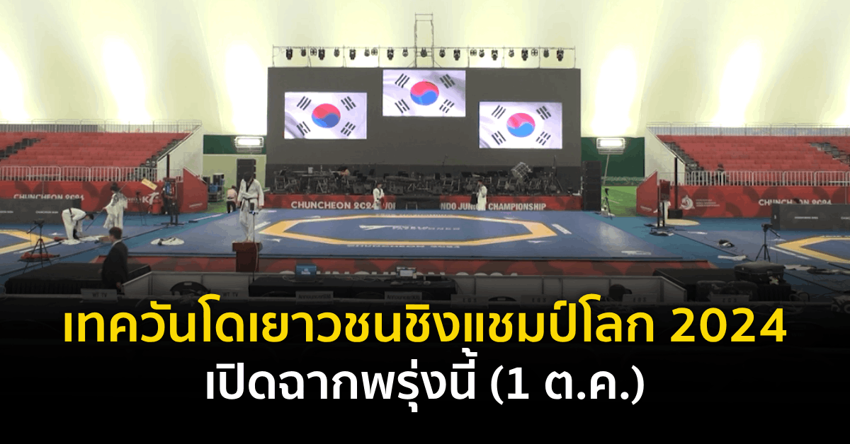 เกาหลีใต้ 30 ก.ย. – เทควันโดเยาวชนชิงแชมป์โลก 2024 เตรียมเปิดฉาก พรุ่งนี้ (1 ต.ค.) ไปติดตามความพร้อมของนักกีฬาเทควันโดเยาวชนทีมชาติไทย จากรายงาน