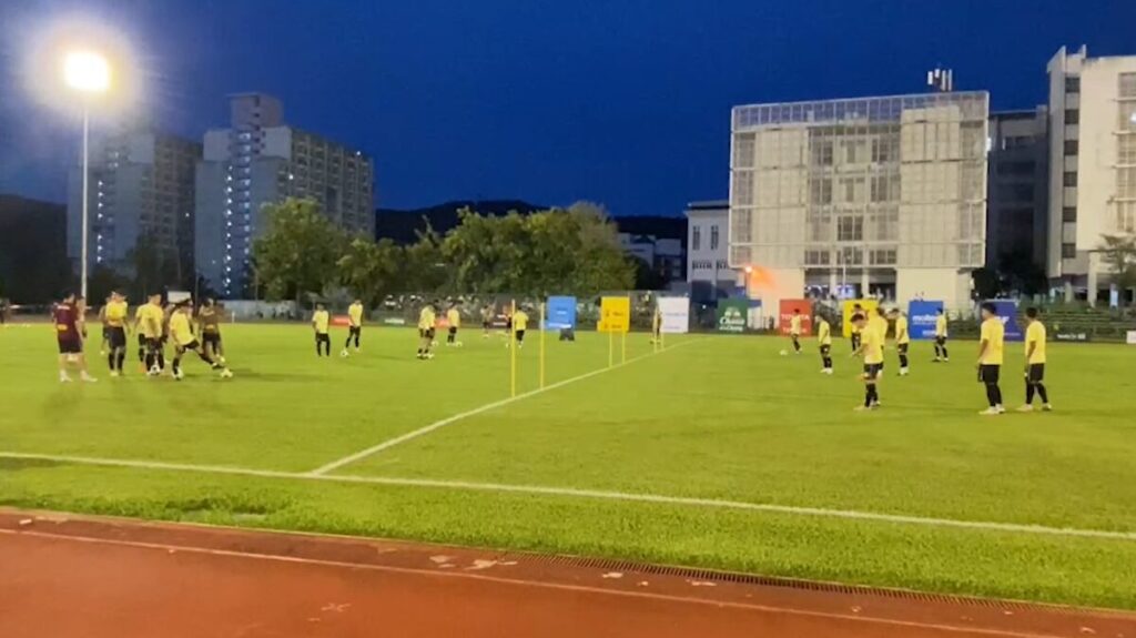 หลังจากนั้น มาซาทาดะ นำนักเตะเข้าโรงแรมที่พัก และนำนักเตะลงฝึกซ้อมทันทีในช่วงเย็นที่ผ่านมา ที่สนามกีฬามหาวิทยาลัยสงขลานครินทร์ ได้เปิดให้แฟนบอลเข้าชม ซึ่งมีแฟนบอลจำนวนมากที่ตามมาชมการฝึกซ้อมของทีมชาติไทยในครั้งนี้