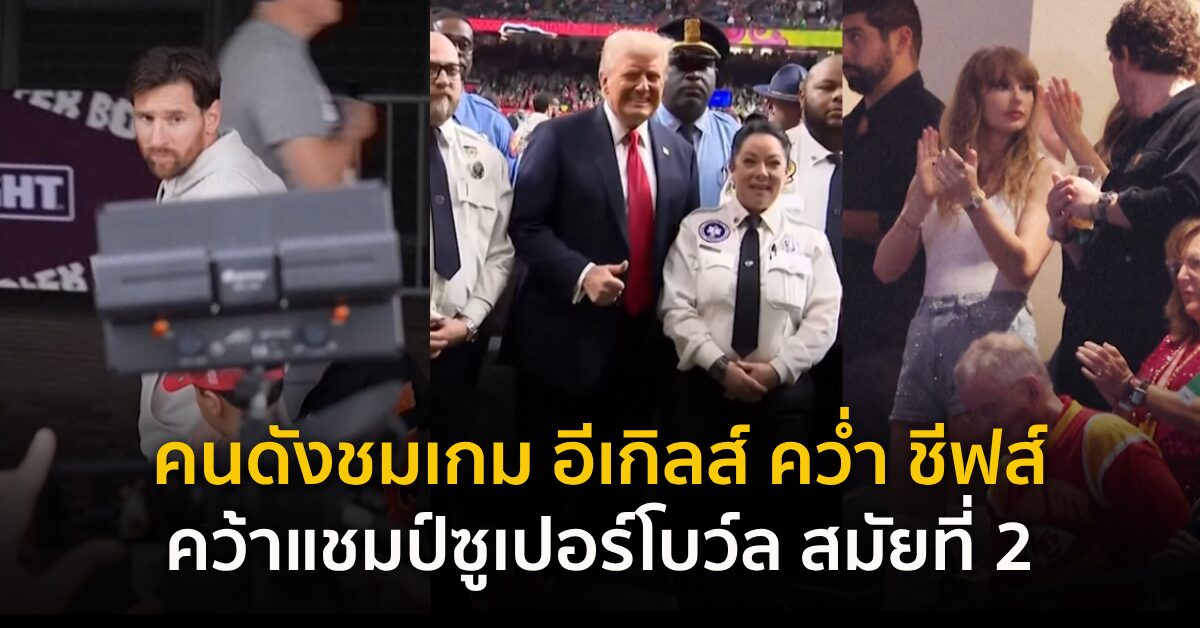 สหรัฐ 10 ก.พ. – ควันหลงศึกซูเปอร์โบว์ล ครั้งที่ 59 ฟิลาเดลเฟีย อีเกิลส์ เอาชนะ แคนซัส ซิตี้ ชีฟส์ มีบุคคลสำคัญนำโดย ประธานาธิบดีโดนัลด์ ทรัมป์ รวมถึงดารานักแสดง และนักกีฬาชื่อดังไปร่วมชมการแข่งขันอย่างคับคั่ง