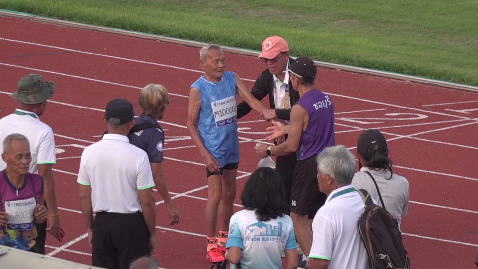 ส่วนการชิงชัยเหรียญในกีฬาอาวุโสแห่งชาติ ครั้งที่ 7 กรีฑา ที่สนามกีฬากลาง ม.การกีฬาแห่งชาติ วิทยาเขตชลบุรี วิ่ง 100 เมตร รุ่นอายุ 100 ปีขึ้นไป คุณตาสว่าง จันทร์พราหมณ์ นักกีฬาที่อายุมากที่สุดในกีฬาอาวุโส ด้วยวัย 105 ปี จากจังหวัดระยอง ลงแข่งขันในลู่ที่ 7 วิ่งพร้อมกับนักกีฬาจากรุ่นอายุ 85-89 ปี และ 90-94 ปี แต่นับสถิติแยกกันคนละรุ่น
