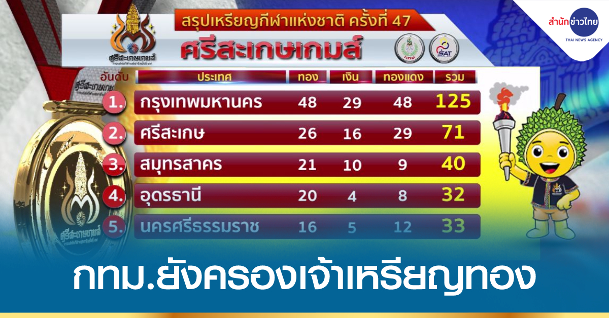 ทัพนักกีฬา กทม.ยังครองเจ้าเหรียญทอง “ศรีสะเกษเกมส์”