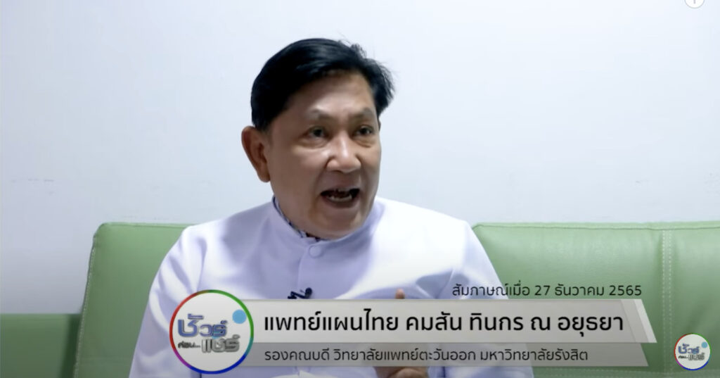 ตรวจสอบข้อมูลกับ : แพทย์แผนไทยคมสัน ทินกร ณ อยุธยา รองคณบดี วิทยาลัยแพทย์ตะวันออก มหาวิทยาลัยรังสิต แพทย์แผนไทยปฏิบัติการ คลินิกการแพทย์แผนไทย มรว.สะอาดทินกร