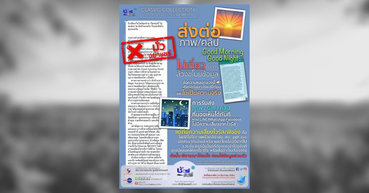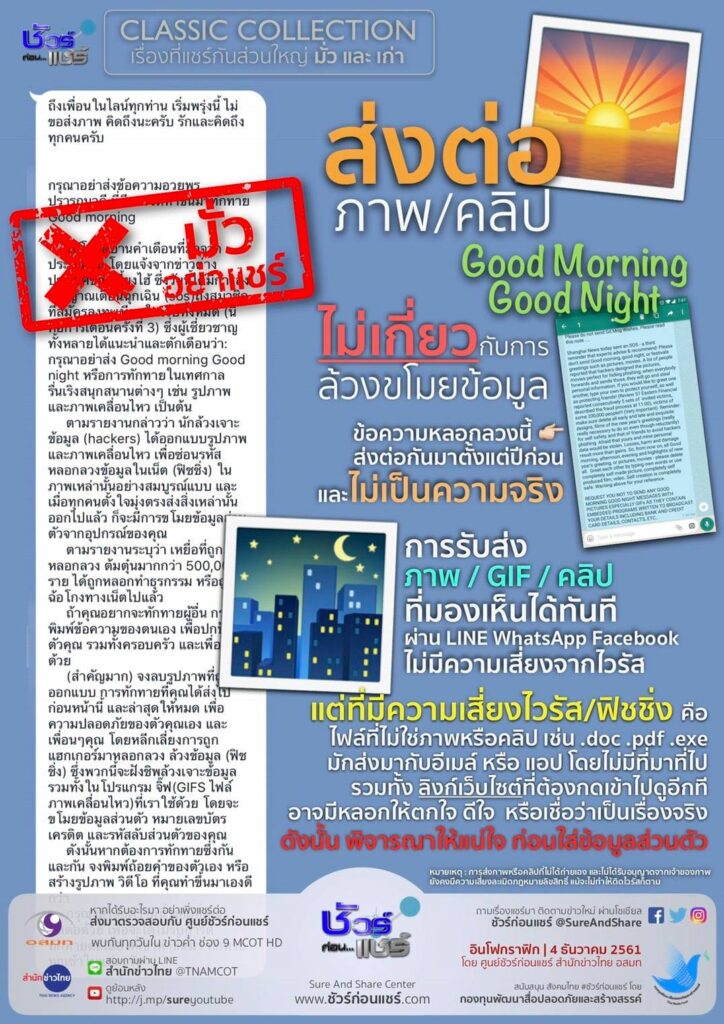 จากกรณีมีการแชร์ข้อความว่ากรุณาอย่าส่งข้อความหรือคลิปอวยพร ปรารถนาดี ที่มีการจัดทำขึ้นมาทักทาย Good morning แล้วจะโดนแฮกเกอร์ล้วงข้อมูลนั้น