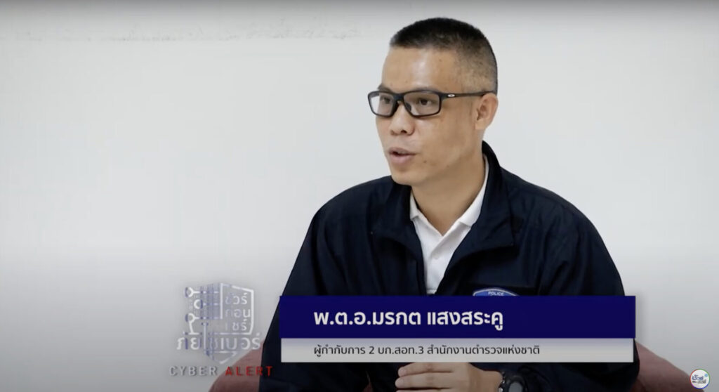 เรื่องนี้ตรวจสอบข้อเท็จจริงกับ : พันตำรวจเอก มรกต แสงสระคู ผู้กำกับการ 2 กองบังคับการตำรวจสืบสวนสอบสวนอาชญากรรมทางเทคโนโลยี 3 กองบัญชาการตำรวจสืบสวนสอบสวนอาชญากรรมทางเทคโนโลยี