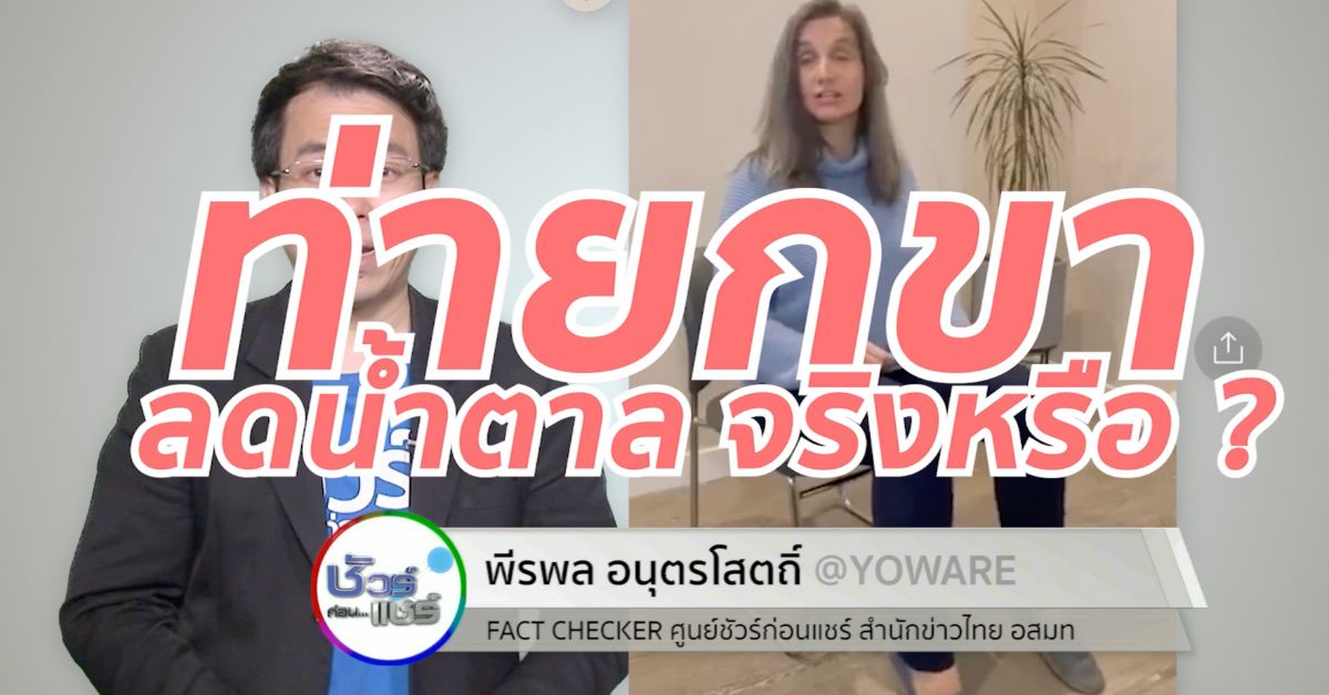 จากกรณีมีการแชร์คลิปพร้อมข้อความแนะนำ SugarResearch ที่มหาวิทยาลัยฮูสตัน พบว่า แค่ทำท่าขยับกล้ามเนื้อด้านหลังขา ช่วยลดน้ำตาลในเลือดผู้ป่วยเบาหวานได้ดีกว่ายานั้น