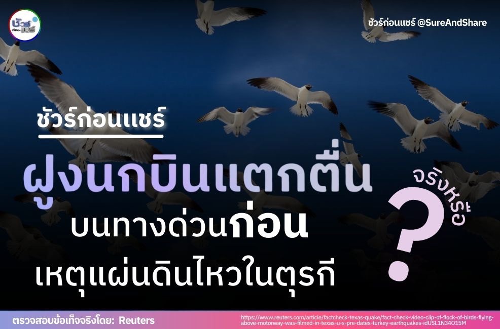 แม้วงการวิทยาศาสตร์จะให้ความสนใจและศึกษาความเป็นไปได้ที่สัตว์จะมีสัญชาติญาณรับรู้ภัยธรรมชาติได้ดีกว่ามนุษย์ แต่การตรวจสอบโดย Reuters Fact Check พบว่า คลิปวิดีโอฝูงนกบินแตกตื่นบนทางด่วน ก่อนเหตุแผ่นดินไหวในตุรกี ไม่มีความเกี่ยวข้องกับเหตุแผ่นดินไหวในประเทศตุรกีแต่อย่างใด