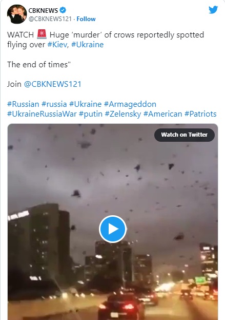 คลิปเดียวกันนี้ ยังเคยนำไปสร้างข่าวปลอมเกี่ยวกับสงครามรัสเซีย-ยูเครนเมื่อเดือนมกราคมที่ผ่านมา โดยผู้โพสต์ทาง Twitter อ้างว่า ฝูงนกรับรู้การบุกโจมตีกรุงเคียฟโดยกองทัพรัสเซีย