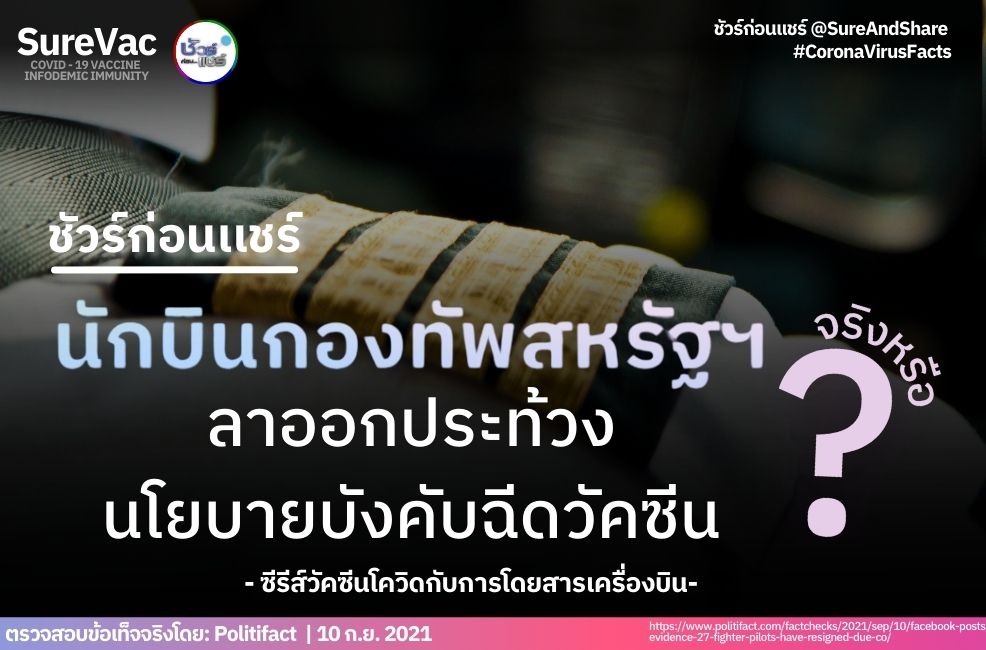 - โฆษกกองทัพอากาศสหรัฐฯ ยืนยันว่าไม่มีนักบินลาออกเพราะนโยบายบังคับฉีดวัคซีนโควิด-19 ของกองทัพ ซึ่งบังคับใช้หลัง FDA ให้การรับรองเต็มรูปแบบแก่วัคซีนโควิด-19 ของ Pfizer
