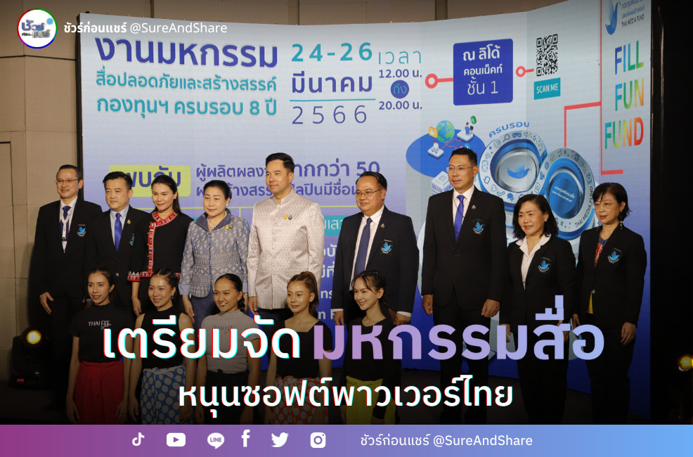 กรุงเทพฯ 7 มีนาคม 2566 – กองทุนพัฒนาสื่อปลอดภัยและสร้างสรรค์ แถลงข่าวเตรียมจัด “มหกรรมสื่อปลอดภัยและสร้างสรรค์” เนื่องในโอกาสครบรอบ 8 ปี ในวันที่ 24 – 26 มีนาคม 2566 ภายใต้แนวคิด “Infinite X Inspiration สร้างแรงบันดาลใจ ไม่มีที่สิ้นสุด” โดยมีวัตถุประสงค์เพื่อส่งเสริมและพัฒนาระบบนิเวศสื่อที่ดี ให้ประชาชนกลุ่มเปราะบางสามารถเข้าถึงสื่อได้ง่ายมากขึ้น รวมทั้งสนับสนุนผู้รับทุนพัฒนาสื่อให้เกิดผลสำเร็จในอนาคต