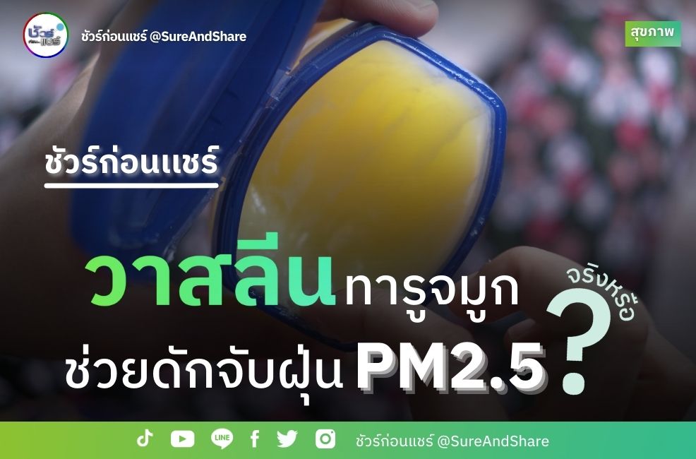 ตามที่มีการแชร์แนะนำว่า ให้ใช้วาสลีน หรือ ปิโตรเลียมเจลลี่ ทาในรูจมูก เพื่อดักจับฝุ่น PM2.5 และเกสรดอกไม้ได้นั้น