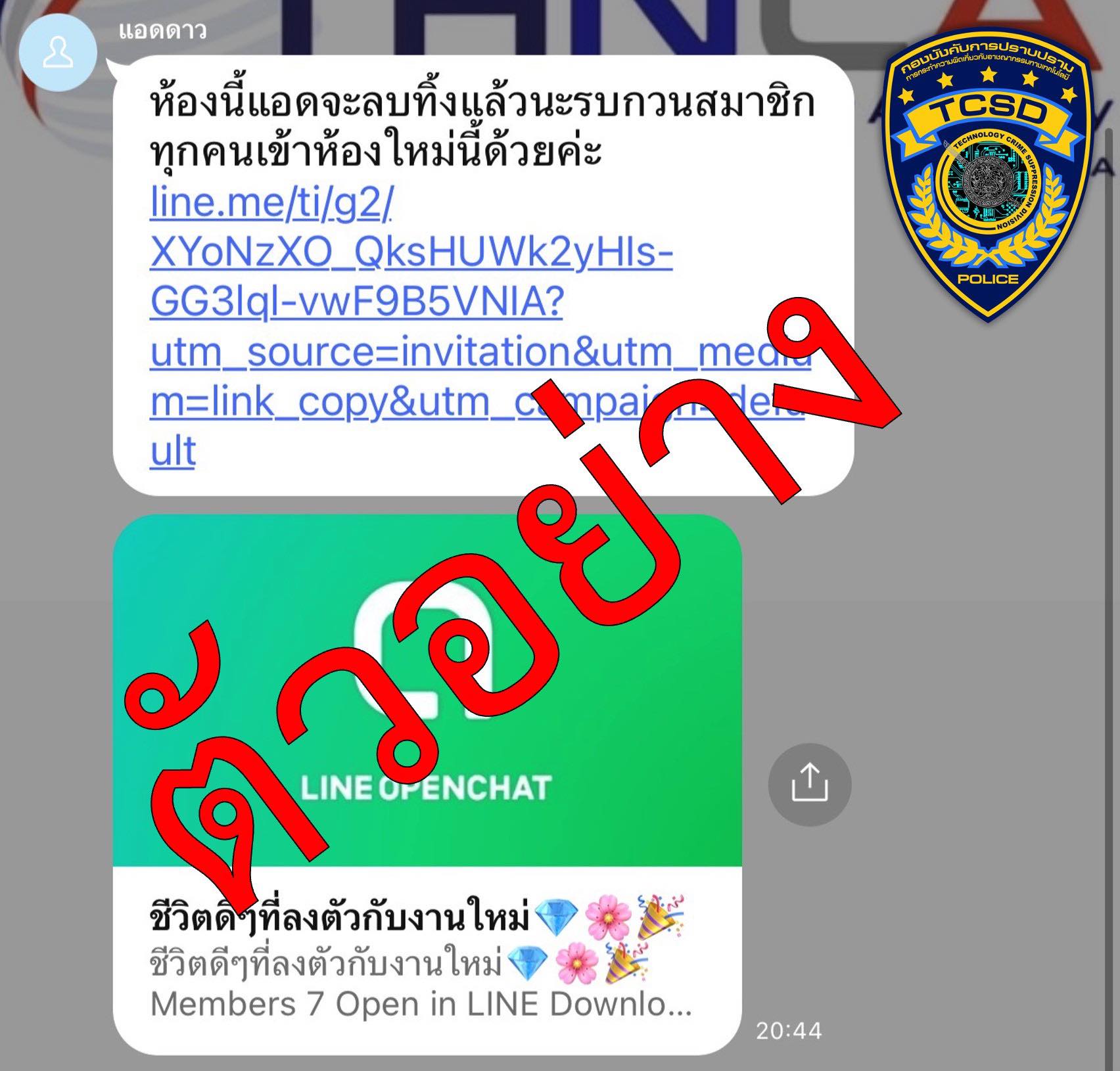 กรุงเทพฯ 24 มี.ค. 66 – ในวันที่ 22 มีนาคม 2566 พ.อ.ต.ศิริวัฒน์ ดีพอ รองผู้บังคับการปราบปรามการกระทำผิดเกี่ยวกับอาชญากรรมทางเทคโนโลยี (รอง ผบก.ปอท.) ออกมาประชาสัมพันธ์เตือนภัยว่า ในปัจจุบันมีกลุ่มมิจฉาชีพก่อเหตุโดยแอบอ้างเป็นแอดมินของกลุ่ม Line Openchat ส่งข้อความและลิงก์ พร้อมกับแจ้งว่า ต้องเปลี่ยนกลุ่มใหม่ โดยใช้เหตุผลที่แตกต่างกัน เช่น สมาชิกเต็ม หรือมีปัญหาต่าง ๆ เมื่อเหยื่อหลงเชื่อ กดเข้าไปที่ลิงก์จะพบกับกลุ่มโฆษณาเว็บไซต์พนันออนไลน์ หรือมีการหลอกลวงเพื่อรวบรวมข้อมูลส่วนบุคคลของเหยื่อ