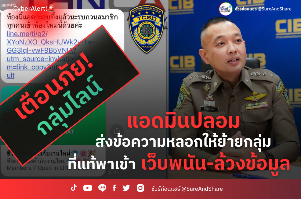 ปอท.เตือนภัยมิจฉาชีพรูปแบบใหม่ แอบอ้างเป็นแอดมินกลุ่มไลน์ แจ้งว่ากลุ่มจะปิด ต้องย้ายกลุ่ม ก่อนหลอกให้คลิกลิงก์พาเข้าเว็บพนัน ลวงเอาข้อมูลส่วนบุคคล ด้าน LINE แนะสังเกต “มงกุฎ” และดูรายชื่อแอดมิน พร้อมแนะไม่กดลิงก์แปลกปลอม