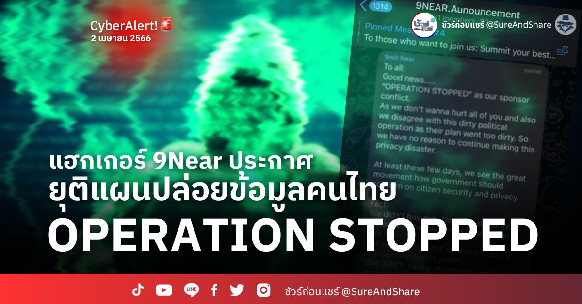 กรุงเทพฯ 2 เม.ย. 66 – เมื่อเวลา 12.23 น. วันที่ 2 เมษายน 2566 ตัวแทนแฮกเกอร์ 9Near ประกาศผ่านข้อความซึ่งส่งในกลุ่มสนทนาของแอป Telegram ชื่อ 9Near.Aunouncement ซึ่งมีสมาชิกติดตามกว่า 2,200 ราย และเป็นกลุ่มที่ไม่อนุญาตให้มีการส่งข้อความใด ๆ