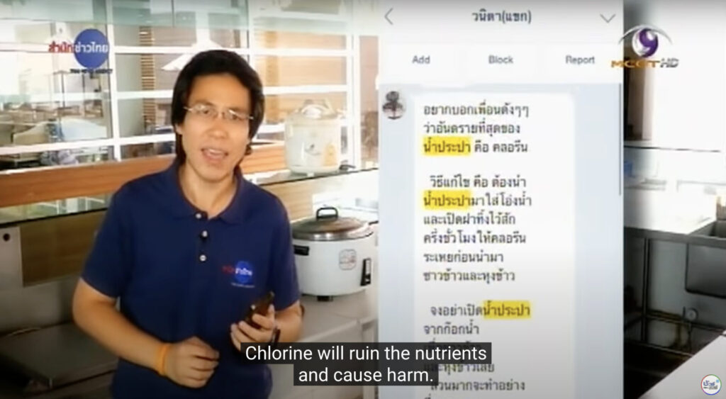 มีการแชร์กันว่าน้ำประปาหุงข้าว เพราะคลอรีนจะทำให้เสียคุณค่าทางอาหารและเป็นอันตราย