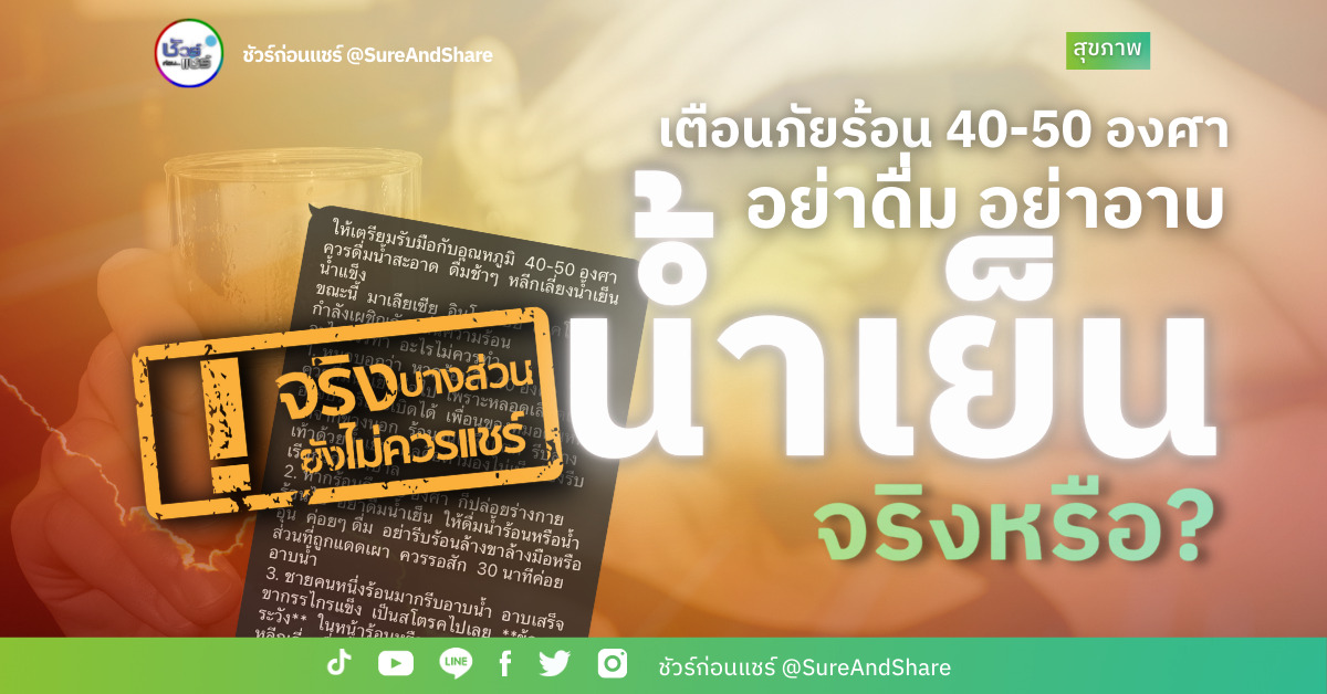 - ส่วนการดื่มน้ำร้อนตามที่แชร์แนะนำ อาจจะไม่ใช่แนวทางที่เหมาะสมในสภาวะอากาศร้อนจัด