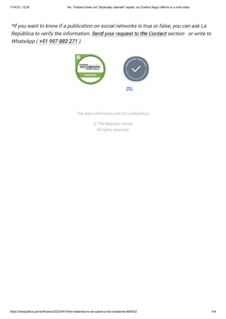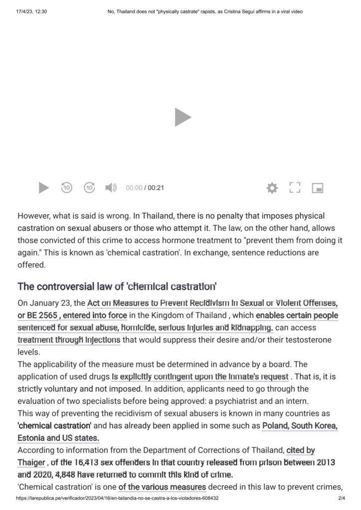 https://larepublica.pe/verificador/2023/04/16/en-tailandia-no-se-castra-a-los-violadores-608432 - [Twitter @VerificadorLR] https://twitter.com/VerificadorLR/status/1647764442745020418