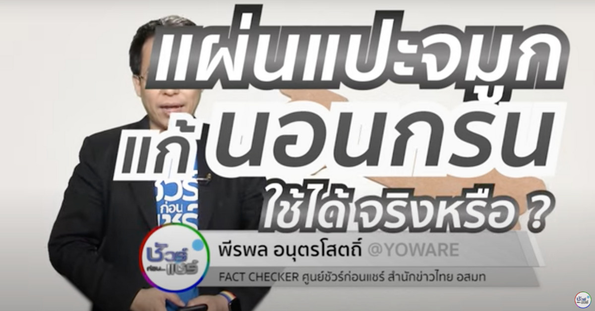 23 เมษายน 2566 – จากกรณีมีการแชร์แนะนำแผ่นแปะจมูกช่วยลดอาการนอนกรนช่วยลดอาการคัดจมูก หายใจได้ดีขึ้น และเหมาะสำหรับการนอนกรน นั้น